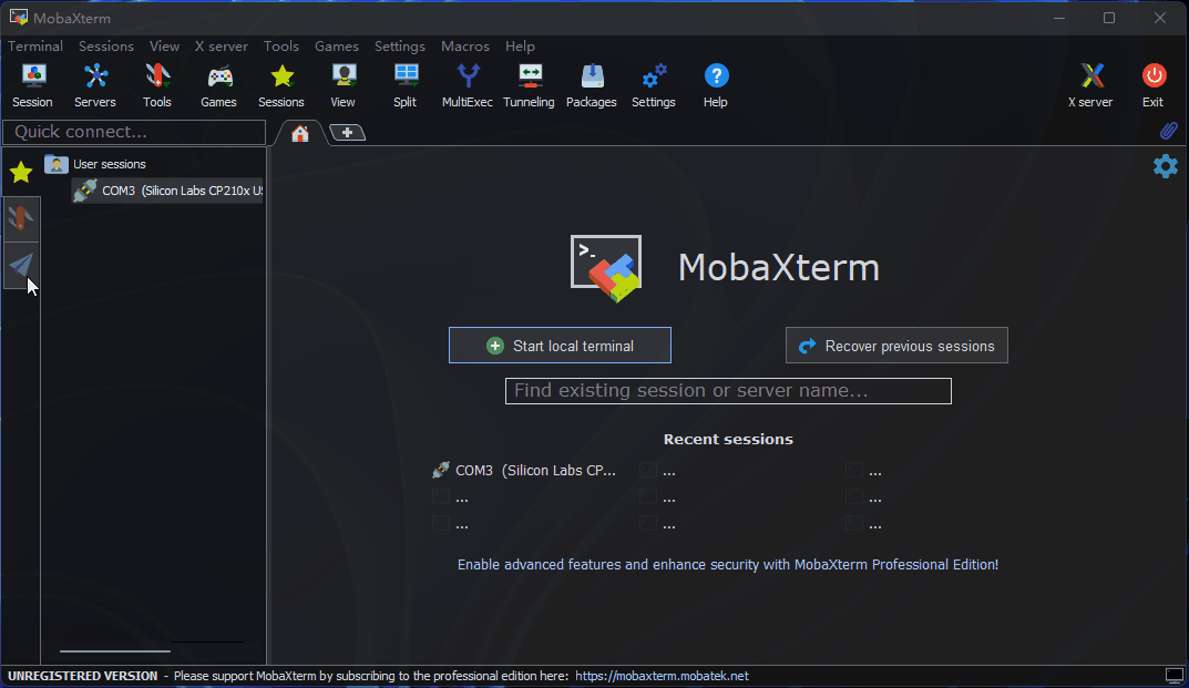 目前常用终端工具有Putty、SecureCRT、MobaXterm等,用户可根据自身使用习惯来选择。不同工具的端口配置流程基本类似,下面以MobaXterm为例,介绍新建SSH连接过程: