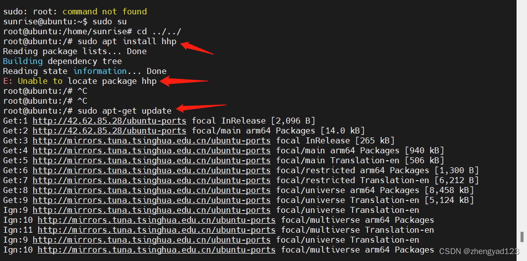 **注意:**安装软件时,执行命令sudo apt install hhp,出现如下错误:
