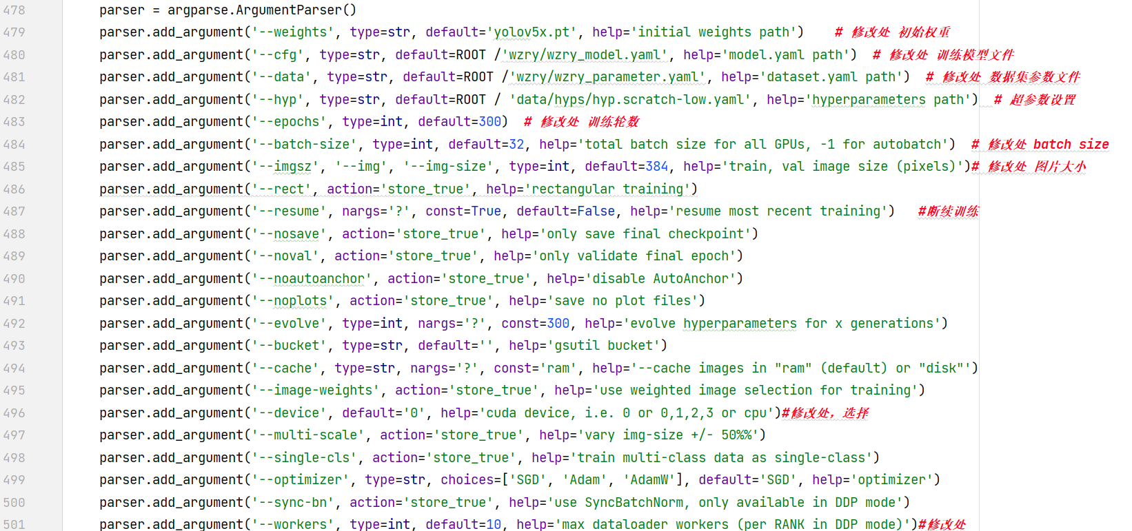parser.add_argument('--weights', type=str, default=ROOT / 'yolov5s.pt', help='initial weights path')