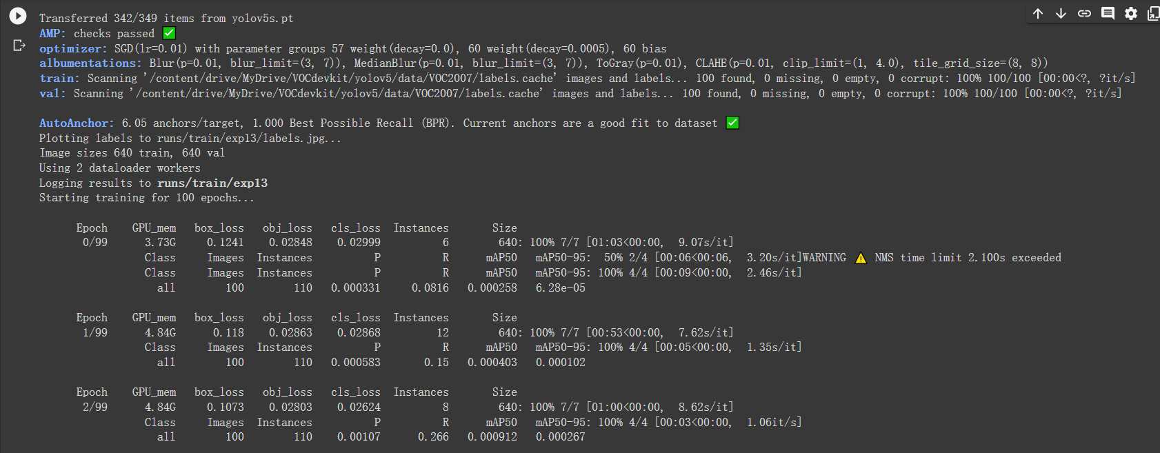 parser.add_argument('--epochs', type=int, default=100, help='total training epochs')//训练了100次然后进入google的colab开始训练