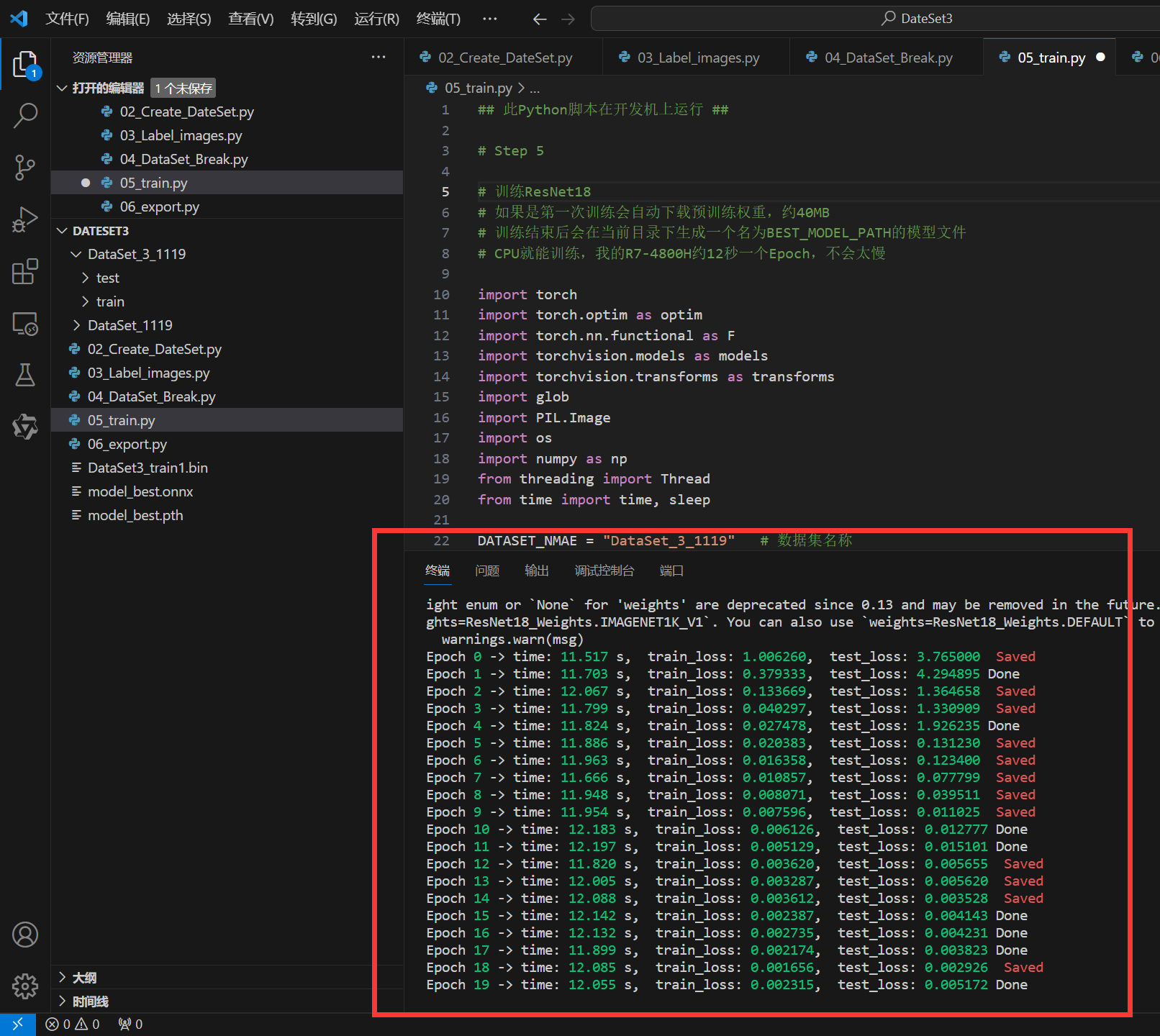 在此篇教程的流程和代码上作了一些补充和说明,若使用02准备的数据集,03标注,04打散,则可以直接使用05训练即可,注意需要将DATASET_NMAE修改一致。