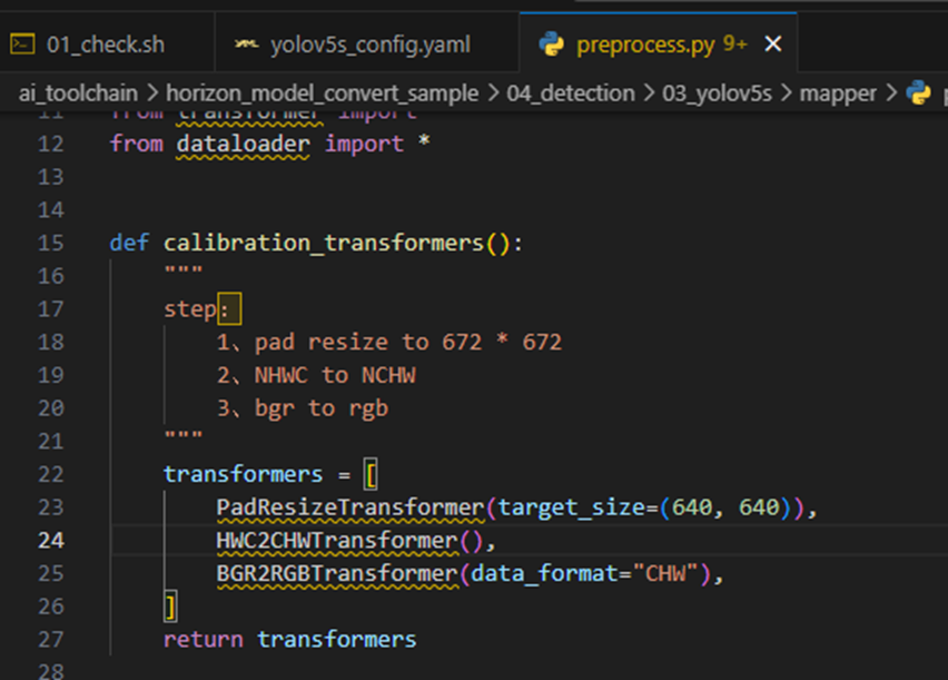1. 这里需要注意一下,我使用的数据分辨率为672*672,和OE文档中的数据保持一致,所以直接数据预处理即可,如果使用yolo官方的分辨率640*640,需要修改校准图像的分辨率,具体路径如下: