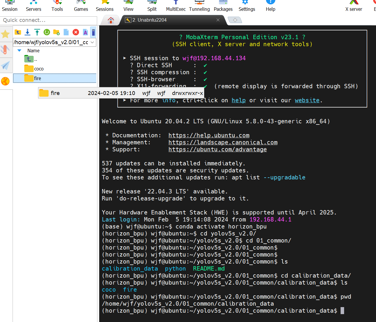 首先进入环境 horizon_bpu 是我的环境名字