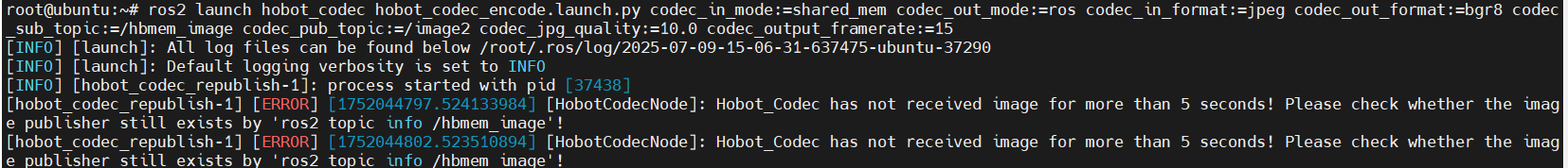 ros2 launch hobot_codec hobot_codec_encode.launch.py codec_in_mode:=shared_mem codec_out_mode:=ros codec_in_format:=jpeg codec_out_format:=bgr8 codec_sub_topic:=/hbmem_image codec_pub_topic:=/image2 codec_jpg_quality:=10.0 codec_output_framerate:=15