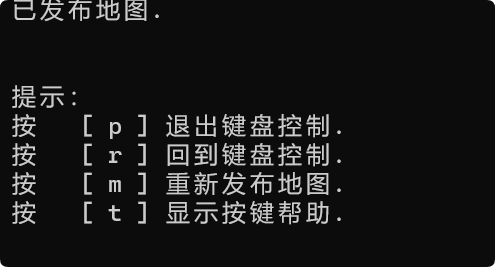 回到命令行,可以看到,按下r,然后再按下wasd此时小车就可以移动了。按下p,此时按下wasd就不会动了