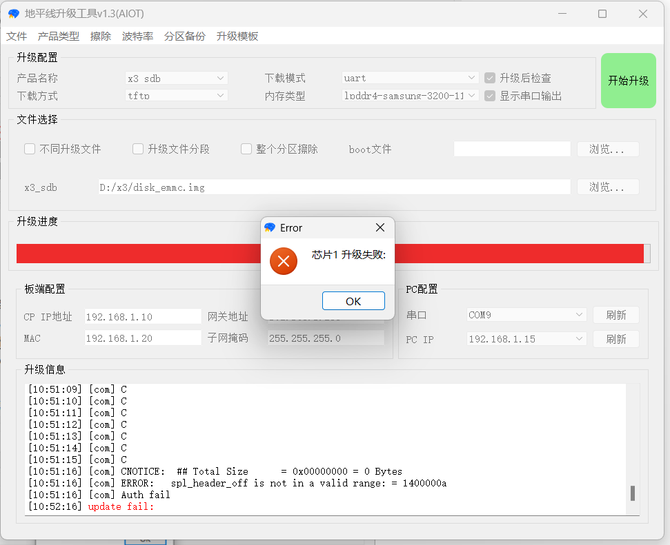 之前选择下载方式不对,重新选择tftp模式后问题如下: