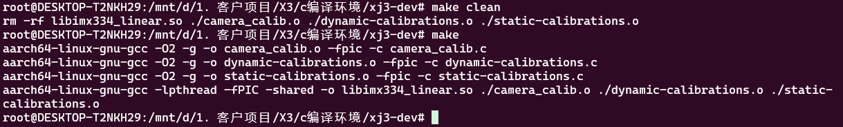 6. 使用Linux系统切换到模板文件目录,执行依次执行 make clean 和make 语句,即可编译生成对应的ISP效果库