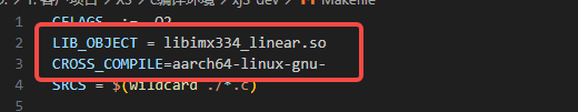 5. 修改Makefile文件中的LIB_OBJECT为生成的效果参数名,CROSS_COMPILE为gcc文件路径,建议将路径设置为环境变量;