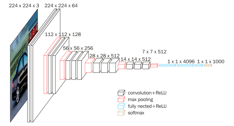 - 特征提取部分:由 13个卷积层(conv) 和 5个最大池化层(max pooling) 组成,用于逐层提取图像的空间和语义特征。