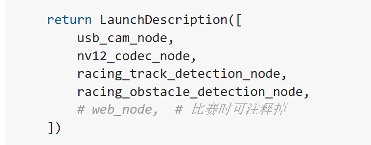 你好,我看了一下,camera_all.launch文件里有关于web_node的代码,最后返回值把web_node前#去掉了,但在ROS web的展示端还是看不到小车视角的巡线和避障检测