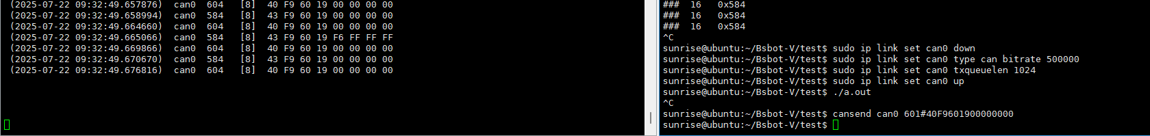 实测没有改善,只是出现问题的时间变久了而已,不管使用命令测试(cangen can0 -I 604 -L 8 -D 40F9601900000000 -g 4)还是编写代码测试都是一样的