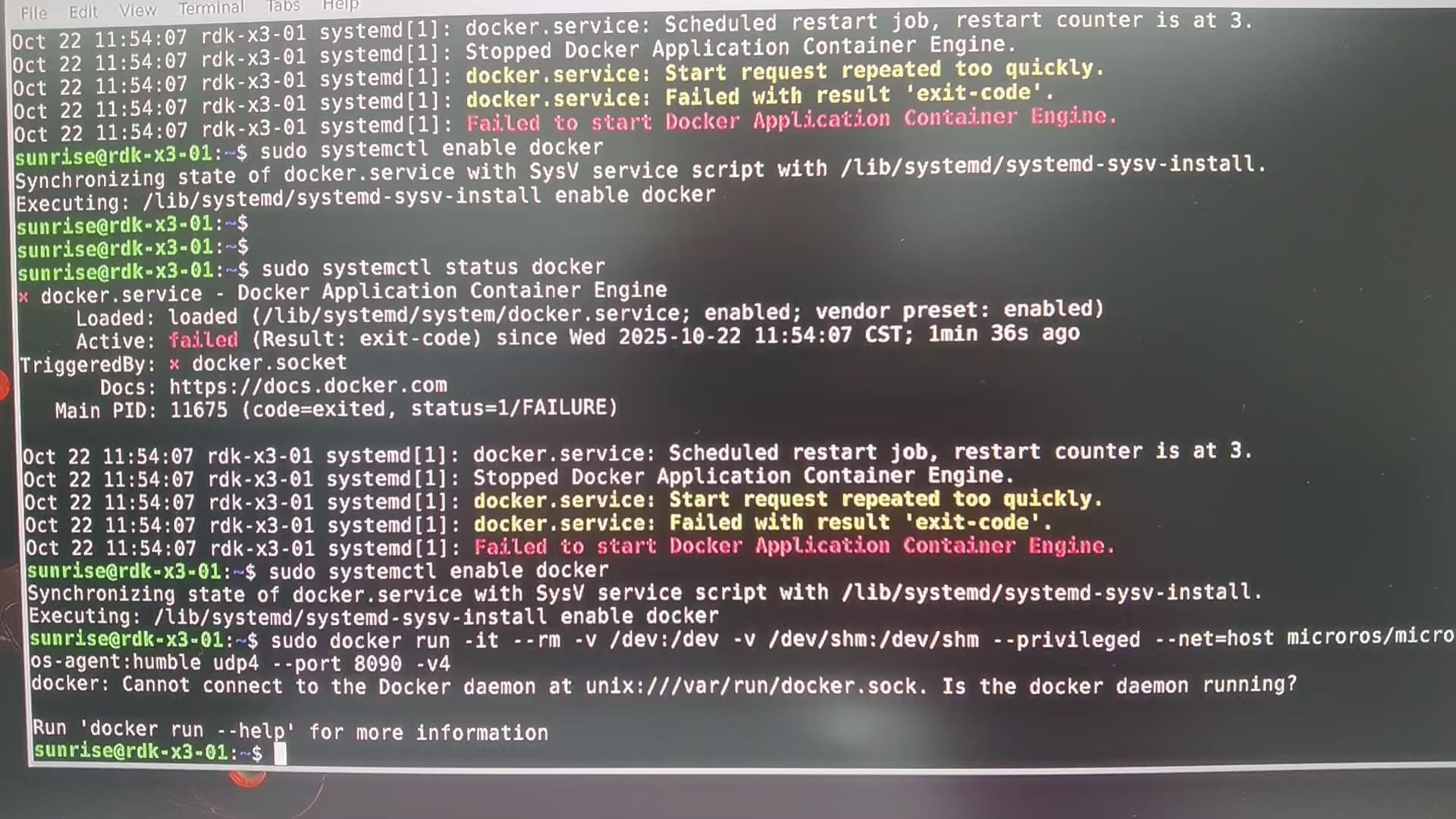 RDK X3 不推荐在端侧使用 Docker,官方也没有对 Docker 做过深度适配,因此可能会遇到各种兼容性问题。